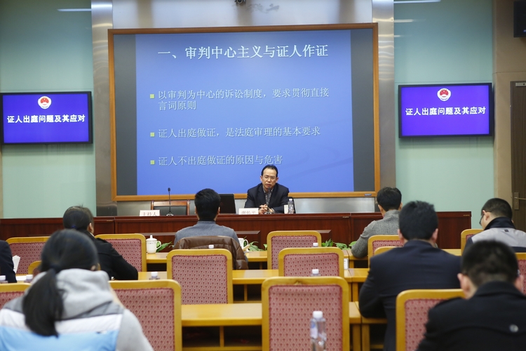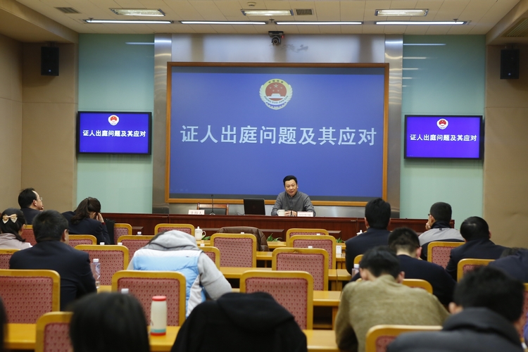 讲座中,谢佑平教授围绕以审判为中心的诉讼制度要求贯彻直接言词原则,详细阐述了证人不出庭作证的原因和危害。随后,市检察院公诉一处处长顾晓敏结合具体案例,分析了目前证人出庭方面遇到的实际问题,并提出相关对策和建议,帮助干警将理论和实际应用相结合。