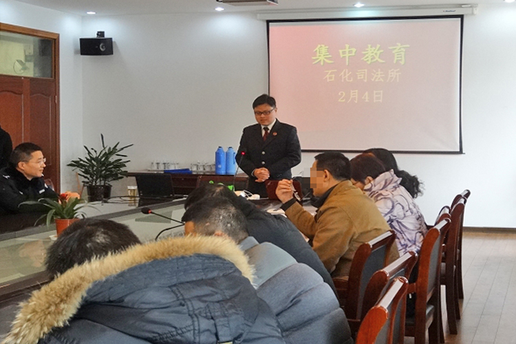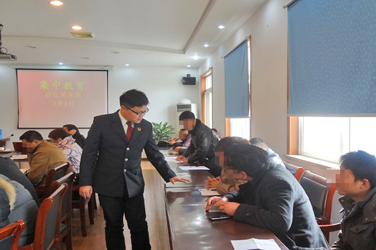 为预防社区矫正人员重新犯罪,日前,金山区检察院检察官受区石化司法所邀请,对石化辖区内30余名社区矫正人员进行集中教育。