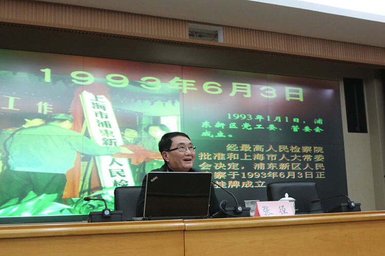 道德课上,张径用大量珍贵的历史照片,诠释了中国和上海检察事业创立、探索、发展的艰难历程,并结合筹建浦东新区检察院,以及他长期在浦东工作的经历,介绍了该院从建院之初156人发展到如今全国最大基层检察院的创新发展之路。同时,他立足“浦东区位优势、先行先试要求、先发效应趋势”,从“业务工作创新”、“规范管理创新”、“党建带队建创新”三个方面,运用具体的案例展现了该院实现“一年打基础、二年上台阶、三年进前列”目标的创业精神,将一部生动的中国和上海检察史、浦东新区和检察院的发展史展现在新一代东检人的面前。