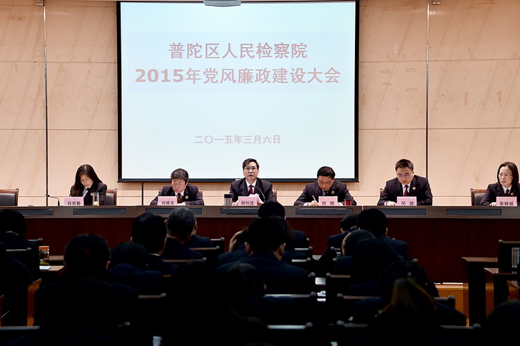 3月6日,普陀区检察院召开了2015年党风廉政建设大会。会议由该院纪检组组长肖荣勤主持,全院干警出席接受廉政教育。