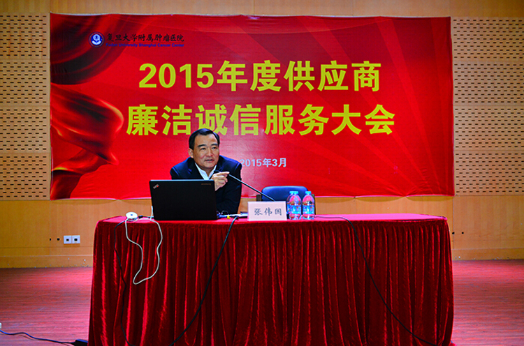 近日,徐汇检察院副检察长张伟国应邀为复旦大学附属肿瘤医院做廉政教育专题讲座。肿瘤医院院长郭小毛、党委书记李端树等出席,肿瘤医院医疗供应商200余人参与讲座。