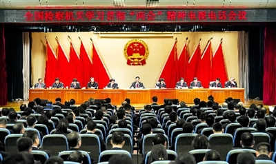 3月23日,最高人民检察院召开全国检察机关学习贯彻全国两会精神电视电话会议,曹建明检察长出席并讲话。正义网记者程丁摄