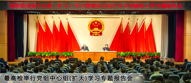 最高人民检察院昨天举行党组中心组(扩大)学习暨规范司法行为专项整治工作专题报告会。邀请中央纪委副书记张军作“运用法治思维惩治腐败”专题辅导报告。最高人民检察院党组书记、检察长曹建明出席报告会。