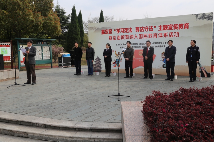 近日,嘉定区法宣办、区教育局、区司法局、团区委等单位联合嘉定区检察院,在嘉定区宪法广场联合举办“学习宪法尊法守法”主题宣传教育暨法治教育纳入国民教育体系活动,旨在推动把法治教育纳入国民教育序列,编入中小学教学大纲,在中小学设立法治知识课程,保证在校学生都能得到基本法治教育。