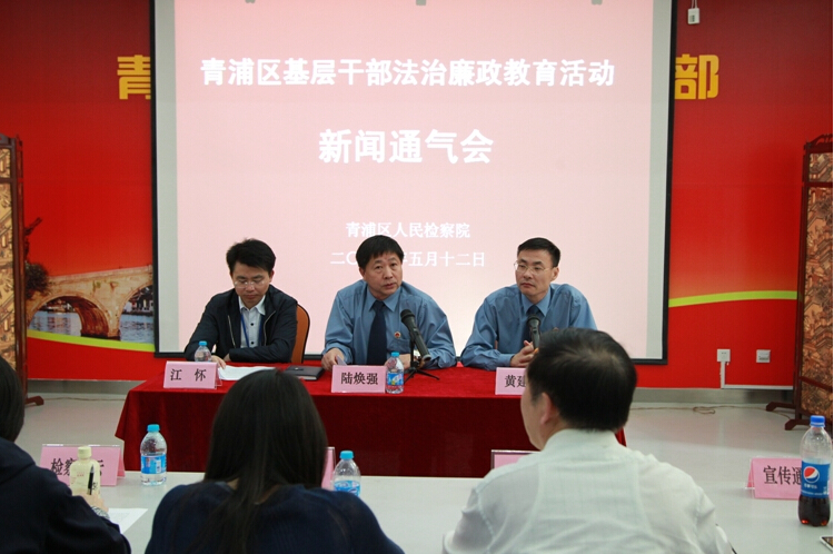 5月12日下午,青浦区检察院举办基层干部法治廉政教育活动新闻通气会,该院副检察长陆焕强、黄建荣出席,检察日报、新华社等十余家媒体单位参加。