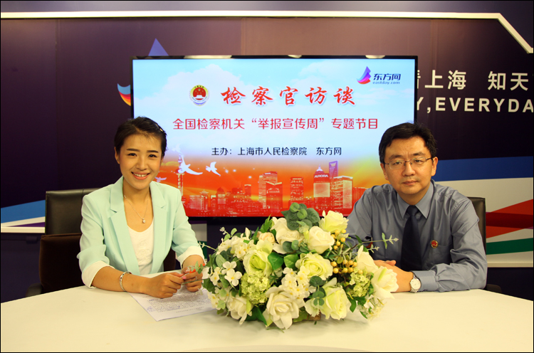 2015年6月23日至26日是全国检察机关第十七个“举报宣传周”。本次“举报宣传周”活动的主题为“落实举报规定,推进反腐倡廉和规范司法”,2015年6月23日下午,长宁区检察院副检察长刘晶做客东方网“检察官访谈”节目,围绕今年“举报宣传周”主题,介绍检察机关在开展规范司法行为专项整治工作中的举措,以及该院在查处和预防职务犯罪工作所取得的成效,并与网友在线交流。