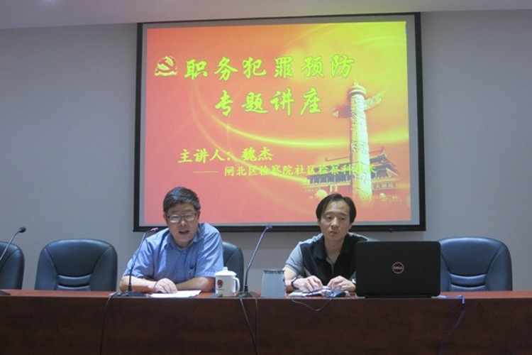 为进一步落实预防职务犯罪社会化要求,日前,闸北区检察院社区检察科检察官赴闸北区矫正中心开设以“筑牢思想防线,预防职务犯罪”为题的预防职务犯罪讲座,30余名来自闸北区各街镇的司法局干部、司法民警、街镇司法所所长及矫正社工参加了此次讲座。