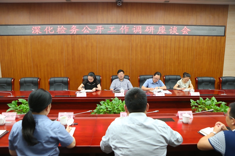 近日,市检察院检委会专职委员居广鉴一行赴嘉定区检察院调研深化检务公开工作。调研座谈会上,嘉定区检察院检察长阮祝军介绍了该院开展检务公开工作的思路和主要措施,副检察长郭箐就该院今年以来检务公开工作的做法、成效、遇到问题及下阶段的工作设想作了汇报。