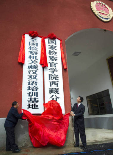 在隆重庆祝西藏自治区成立50周年之际,西藏检察机关人才培养和教育培训也迎来一件大喜事——今天下午,刚刚落成的全国检察机关藏汉双语培训基地和国家检察官学院西藏分院在西藏林芝揭牌。最高人民检察院党组书记、检察长曹建明出席揭牌仪式,看望慰问全体教职员工和学员,并与大家亲切座谈。他强调,加强西藏检察队伍建设,是一项长期的、系统的工程。要站在全面推进依法治国、促进民族团结进步的战略高度,从推动西藏检察工作科学发展出发,加强西藏检察队伍建设,推动藏汉双语检察人才培养,着力建设专业化、职业化的高素质检察队伍,为服务西藏长远发展和长治久安提供坚实的人才保障。