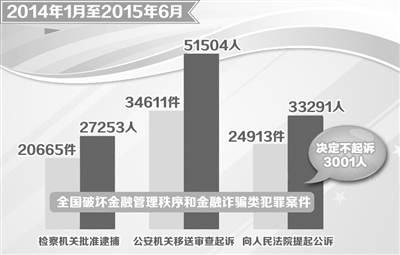 据介绍,近年来,非法集资类犯罪已转变为常态性犯罪,发案数量、涉案人数、涉案金额等均大幅度上升。2015年上半年,检察机关批准逮捕的非法吸收公众存款案同比上升210%,集资诈骗案同比上升74%;受理移送审查起诉非法吸收公众存款犯罪和集资诈骗犯罪案件4011件,超过2014年全年总数,同比上升153.06%。