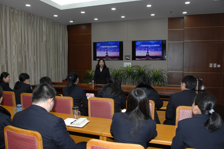 胡岚岚干警以“一个检察青年眼中的法国司法官”为题,从法庭形式、司法官角色、司法在社会生活中的重要性和法律对社会弱势群体的保护四个方面分享了自己参与培训的所思所想,并介绍了法国司法官崇高的职业荣誉感及职业道德。各位青年干警也就如何秉持检察职业道德发表了自己的看法。