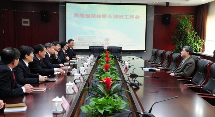 近日,市检察院副检察长周越强前往徐汇区检察院调研工作,徐汇区检察院检察长杨慧亮汇报了该院的工作情况。