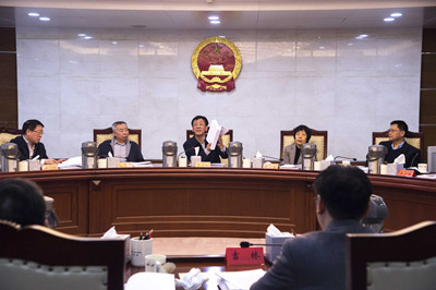 3月22日,最高人民检察院党组书记、检察长曹建明主持召开最高检党组扩大会议,听取全国两会各旁听小组汇报代表委员对最高检工作报告的审议和讨论意见。本报记者程丁摄