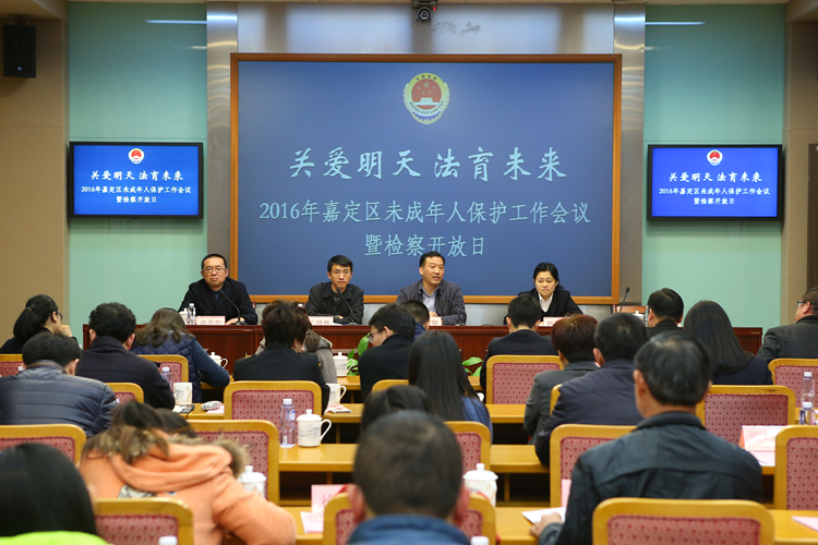 3月22日下午,2016年嘉定区成年人保护工作会议暨嘉定区检察院专场检察开放日活动在区检察院隆重召开。上海市教委青少年保护工作处、市检察院第二分院未检处、嘉定区检察院、区教育局相关领导出席会议。区未成年人保护委员会成员单位联络员,各街镇、嘉定新城、嘉定工业区、菊园新区未成年人保护委员会主任,区法治教育实验校负责人等参加会议。