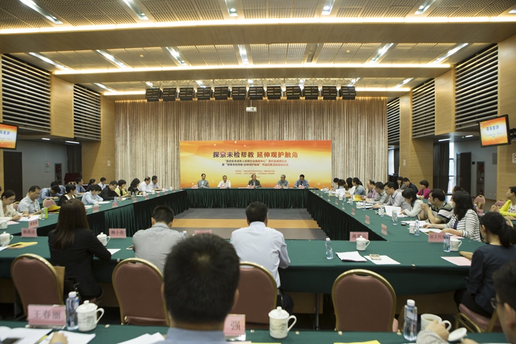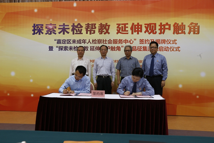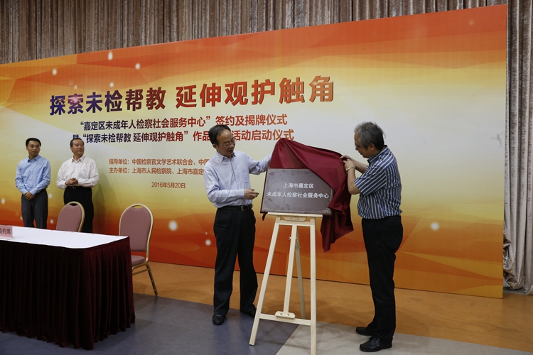 正值中国未成年人检察工作三十周年之际, 由中国检察官文学艺术联合会、中国检察文艺网指导,上海市检察院、嘉定区检察院主办的“探索未检帮教 延伸观护触角”研讨会,于5月20日在上海市嘉定区检察院召开。来自北京、河北、山东、江苏、湖南、江西、广东、上海等地检察机关未检负责人100多人参加研讨交流,上海、北京相关研究机构、高校等专家参会并点评。共青团嘉定区委、区检察院负责人共同签约设立了嘉定区未检社会服务中心,中国检察官文联、中共嘉定区委相关负责人出席研讨并为服务中心揭牌。活动中阳光成长“探索未检帮教 延伸观护触角”作品征集活动同时启动。