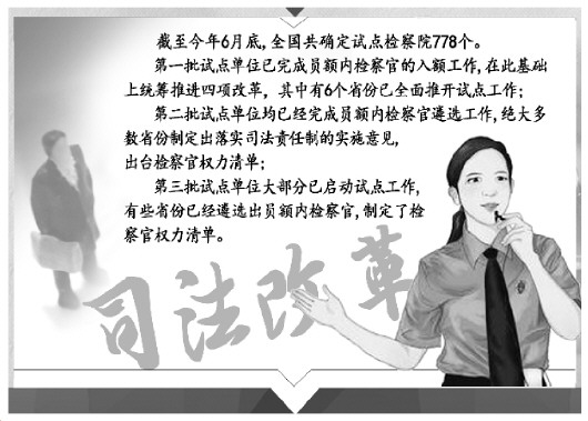 据介绍,各试点地区检察院按照中央部署,逐步推进司法人员职业保障制度改革和省以下人财物统管改革。