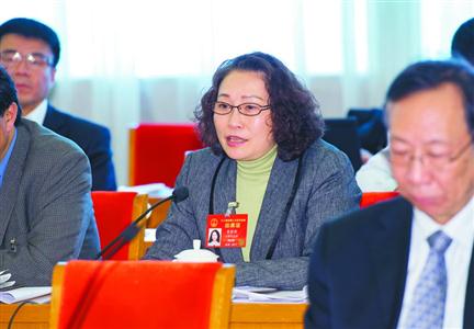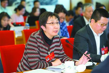 图片说明:昨天,上海代表团举行全团会议,审议两高工作报告。图为马兰代表和李碧影代表正在发言。均本报记者张驰摄
