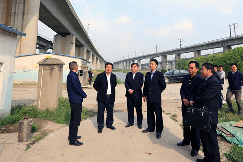 上海市检察院第三分院(铁检分院)检察干警与铁路部门工作人员研究高架铁路桥下安全隐患点的排除方案。