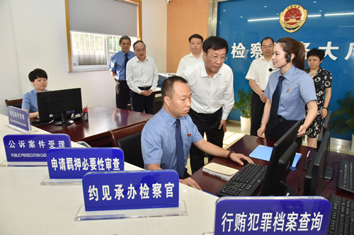 7月24日下午,最高人民检察院党组书记、检察长曹建明就检察机关服务保障“一带一路”建设在浙江省宁波市检察机关调研。本报记者程丁摄