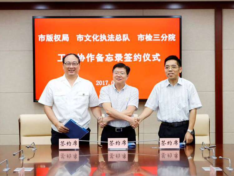 为更好地服务上海科创中心建设,形成知识产权保护合力,近日,市检三分院与市版权局、市文化执法总队共同签署工作协作备忘录。三方就建立的工作联络、联席会议、两法衔接、协同研究、专家平台共享和人员培养培训六项机制达成一致意见。