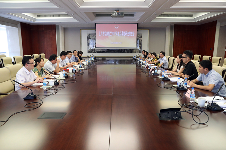 日前,上海市检察机关2017年重点课题研究推进会召开,课题组所在单位的分管副检察长、研究室主任和课题组主要成员参加。各课题组汇报了课题研究提纲、目前进度、课题成果转化设想和课题研究中遇到的主要问题。