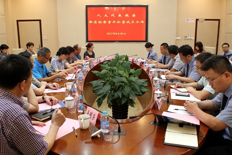 近日,17名在沪全国、市两级人大代表到浦东新区检察院视察命名检察官办公室试点工作,全国人大代表、上海市人大常委会副秘书长、法工委副主任林荫茂,市院党组成员、政治部主任阮祝军出席会议。代表肯定了命名检察官办公室试点工作的成效,并就进一步推进命名检察官办公室试点工作完善授权、监督制约机制、激励措施、加大人才培养力度积极建言献策。