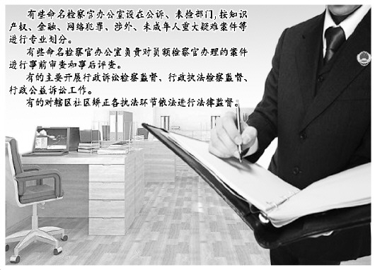 记者发现,各地设立的命名检察官办公室职能不尽相同。2017年7月,浙江省台州市三门县人民检察院设立吴能水检察官办公室,主要开展行政诉讼检察监督、行政执法检察监督、行政公益诉讼工作。2017年年初,天津市河西区人民检察院设立全国首个常驻社区矫正中心检察室,同年5月,该院成立王朝亮检察官办公室,对辖区社区矫正各执法环节依法实行法律监督。
