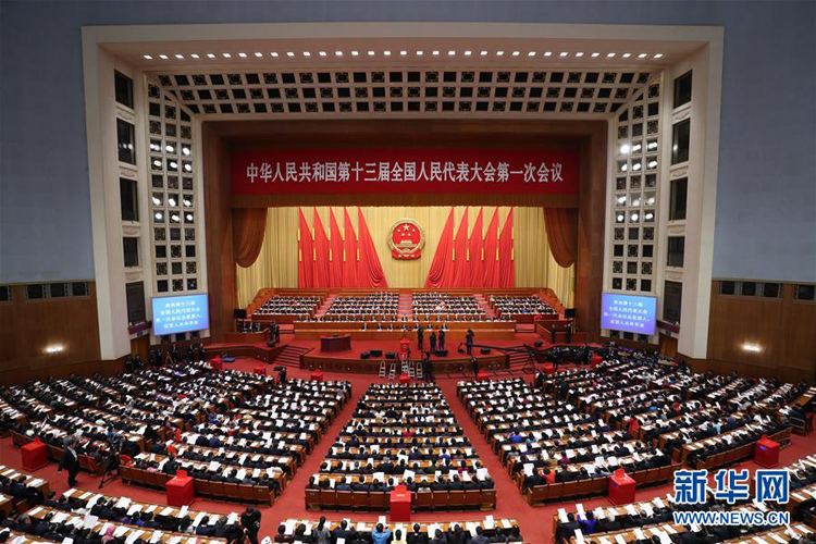 3月11日,十三届全国人大一次会议在北京人民大会堂举行第三次全体会议。 新华社记者 王晔 摄