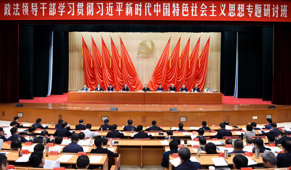 国务委员、公安部部长赵克志主持开班式并在下午作专题辅导报告,最高人民法院院长周强、最高人民检察院检察长张军,中央党校(国家行政学院)常务副校(院)长何毅亭、中央政法委秘书长陈一新、国家安全部部长陈文清、中央政法委副秘书长陈训秋、中央组织部副部长高选民、中央军委政法委书记宋丹出席开班式。中央政法委机关、中央政法各单位领导班子成员,各省(区、市)党委分管政法工作的负责同志,政法委常务副书记、综治办主任,法院、检察院、公安厅(局)、国家安全厅(局)、司法厅(局)主要负责人参加研讨班。