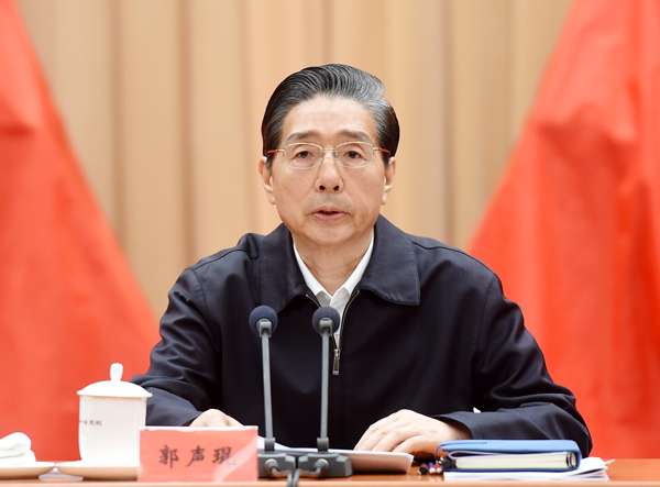 郭声琨强调,要把党的领导、人民当家作主、依法治国有机统一起来,坚决维护习近平总书记核心地位,坚决维护党中央权威和集中统一领导。要把增强忧患意识、防范风险挑战一以贯之,确保国家安全和社会稳定。要把政法口机构改革和司法体制改革融合起来,形成全方位深层次的政法改革新格局。要把政治过硬和本领高强贯通起来,讲政治、精业务、善管理、重落实,切实担当起时代重任。