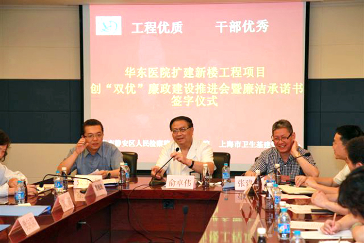 日前,静安区检察院会同上海市卫生基建管理中心和华东医院,召开华东医院扩建新楼工程项目创“双优”推进会暨廉洁承诺书签字仪式,将建设工程的反腐倡廉建设引向深入。