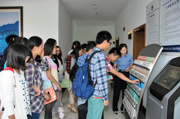日前,20名来自华东政法大学、上海外国语大学、上海对外经贸大学、上海工程技术大学等四所高校的大学生走进松江区检察院,与检察官进行零距离互动交流。