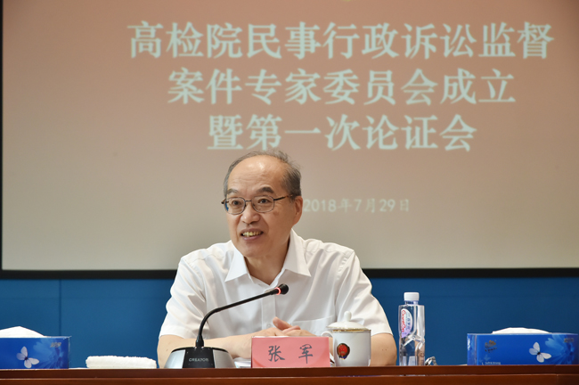 最高人民检察院民事行政诉讼监督案件专家委员会成立暨第一次专家论证会7月29日召开。最高检党组书记、检察长张军强调,要认真落实民行专家委员会制度,借助“外脑”优化强化民行监督。