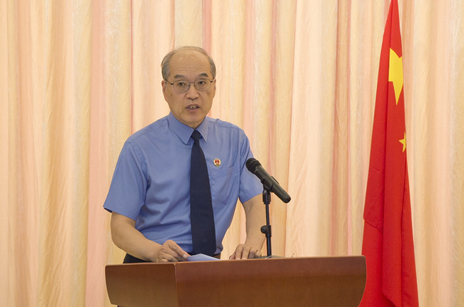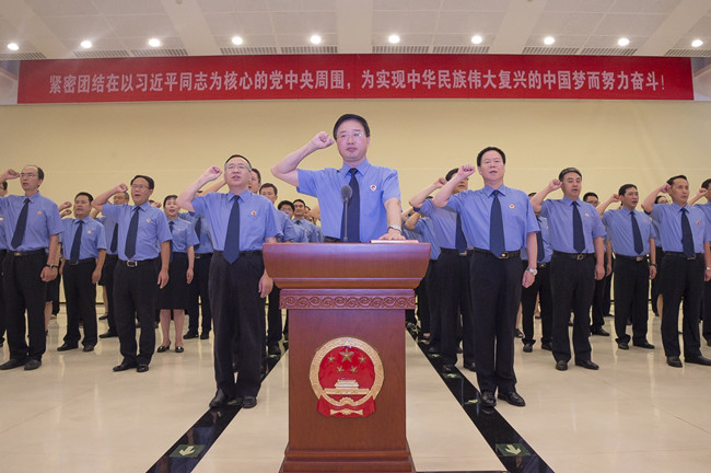 宣誓仪式结束后张军检察长发表讲话。程丁?摄