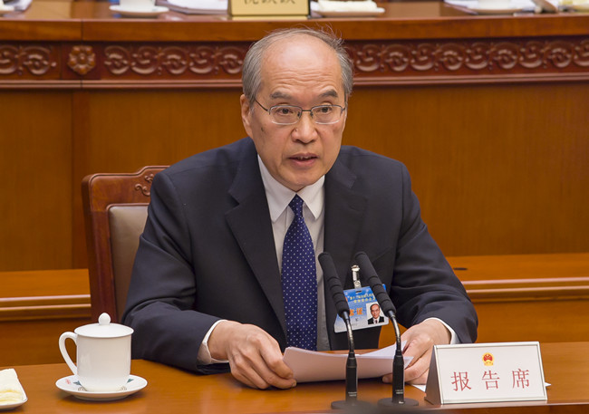 10月24日上午,最高人民检察院检察长张军在十三届全国人大常委会第六次会议上作关于检察机关加强民事诉讼和执行活动法律监督工作情况的报告。程丁 摄