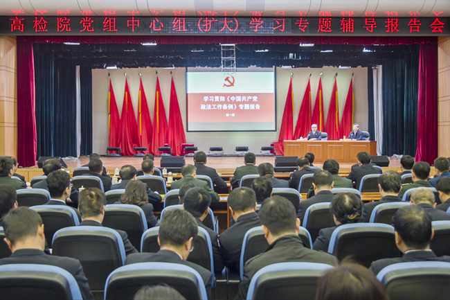 2月22日,最高人民检察院举行党组中心组(扩大)学习专题辅导报告会,学习贯彻《中国共产党政法工作条例》。