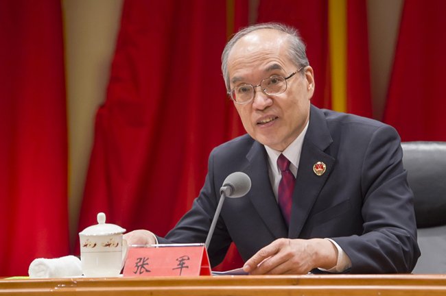 最高检党组书记、检察长张军主持报告会。