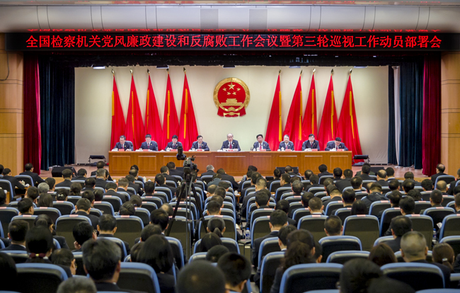 2月25日,全国检察机关党风廉政建设和反腐败工作会议暨第三轮巡视工作动员部署会举行,最高人民检察院党组书记、检察长张军强调,要以习近平新时代中国特色社会主义思想为指导,进一步增强“四个意识”,坚定“四个自信”,做到“两个维护”,紧紧围绕“讲政治、顾大局、谋发展、重自强”的检察工作总体要求和“稳进、落实、提升”的检察工作主题,坚持以党的政治建设为统领全面推进检察机关党的建设,以深化“两个责任”落实推动全面从严治检向纵深发展,以完善内部监督制约体系推动检察权依法正确行使,为“四大检察”全面协调充分发展提供坚强保障,确保党中央决策部署在检察机关不折不扣落到实处,以优异成绩迎接新中国70华诞。