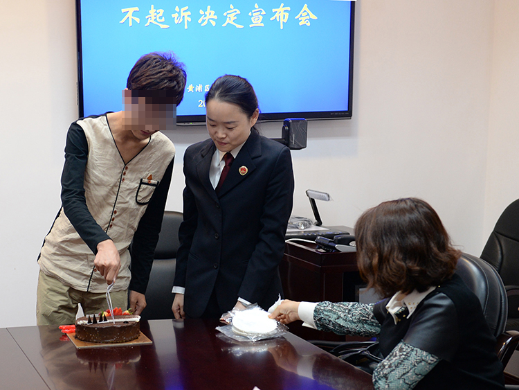 日前,黄浦区检察院对涉嫌盗窃的未成年人小徐依法作出不起诉决定。为体现司法人文关怀,更好地贯彻“教育、感化、挽救”原则,在不起诉决定宣告会上,检察官为小徐送上了18岁成人礼,希望他改过自新,走好今后人生路。