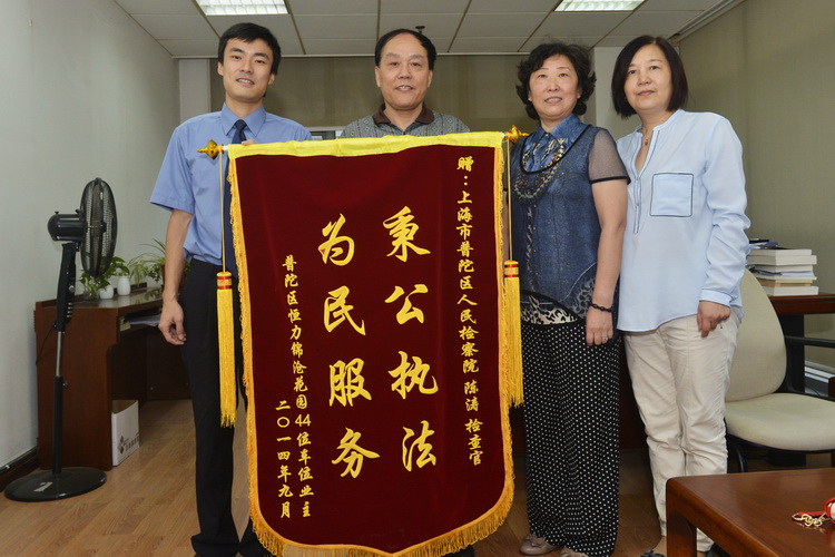 车位过户后,业主们派代表来到普陀区检察院,为承办此案的检察官送上了一面锦旗。他们说道,“在惩治罪犯的同时,你们还心系百姓民生,积极为我们解决问题,真是太感谢了!”