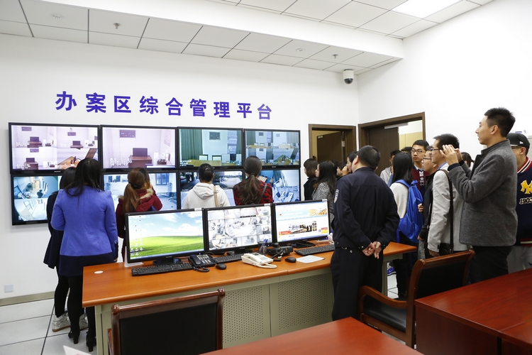 在检察干警的带领下,同学们参观了该院的司法办案场所,近距离了解检察机关的业务内容及队伍建设等情况。参观过程中,同学们常常“一步三停”,纷纷向检察官提问,提出自己对检察工作的一些疑问。讯问室里,检察官为同学们耐心讲解嘉定检察院落实修改后《刑事诉讼法》及相关法律法规要求,配备同步录音录像设备的操作规定和录制过程;司法生理心理测试室内,检察官介绍测谎仪工作原理,解释测谎报告中所反映的信息及在案件中测谎的作用;律师阅卷室里,方便高效的律师接待服务系统,尤其是律师翻印机器让同学们感受到检察机关尊重人权的执法办案理念和倡导服务的宗旨。