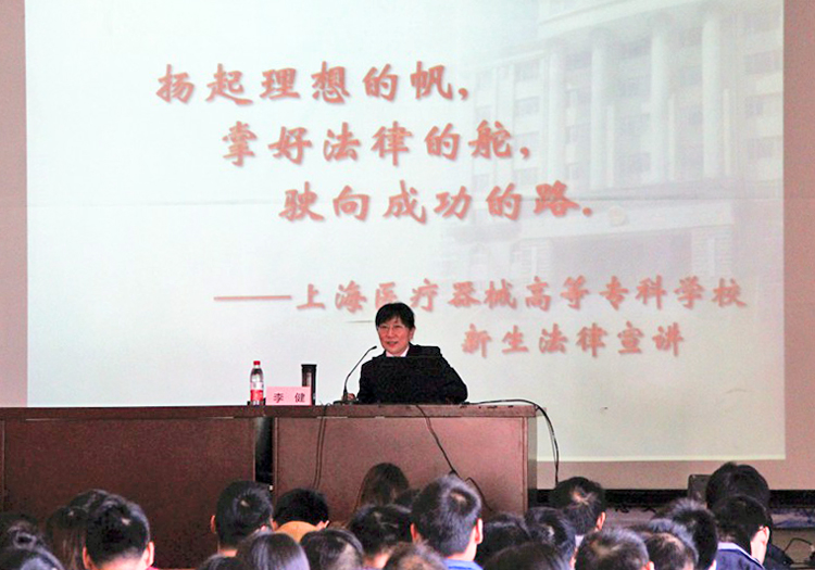 日前,杨浦区检察院检察官前往医疗器械高等专科学校,以“扬起理想的帆、掌好法律的舵、驶向成功的路”为主题为该校学生作了一场法制宣讲,近450名学生聆听讲座。