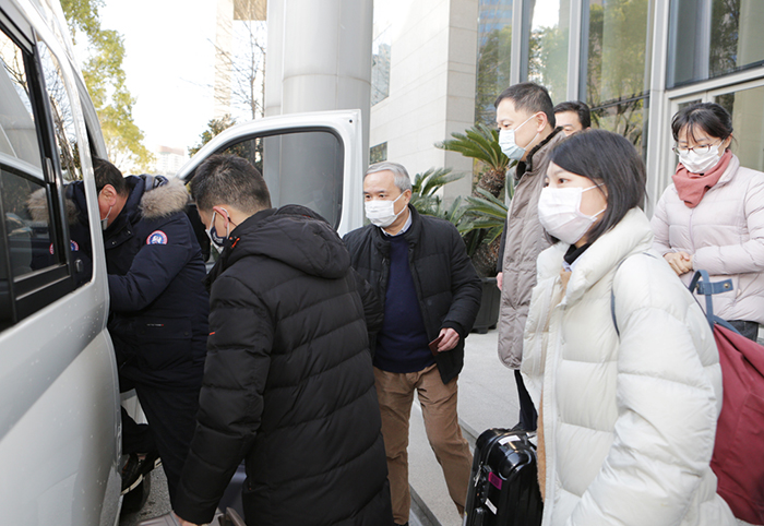 2月17日,我院冯正伟、李东、耿聪、张建彤等4名干警根据市级机关工委和市院的统一部署要求,作为首批志愿者精神抖擞奔赴抗击疫情第一线。院党组成员、副检察长黄辉、政治部主任顾云寅为志愿者们送行并作动员。