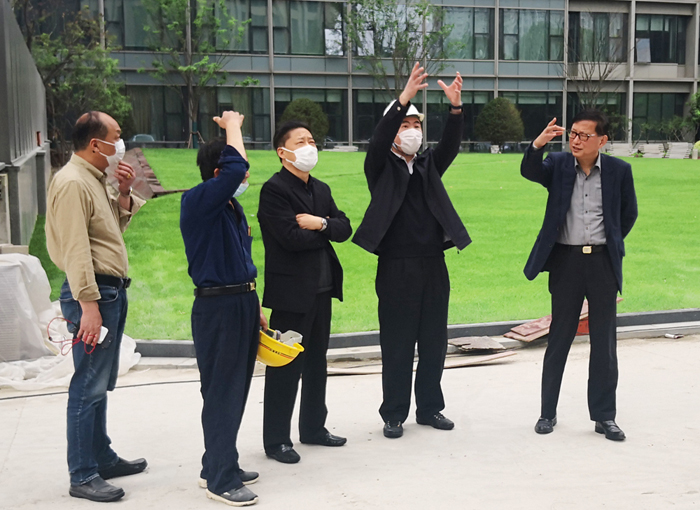 近日,院党组书记、检察长徐金贵,院党组成员、副检察长丁宏等到办案业务楼二期工地现场调研,听取我院基建办工程建设情况汇报,并就下一步工程进度和安全提出明确要求。