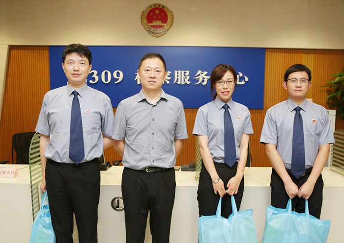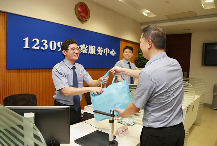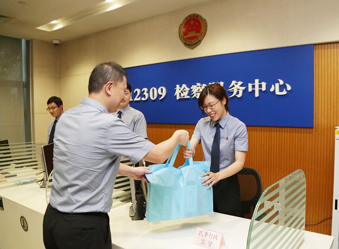 ,我院工会开展夏季送清凉活动。院党组成员、政治部主任顾云寅慰问高温天气下坚守在工作岗位的控申干警,为他们送去防暑降温物品。