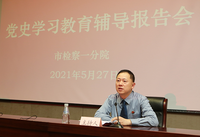5月27日下午,我院举办党史学习教育会。邀请中共一大会址纪念馆宣传教育部兼周公馆主任杨宇同志作《中国共产党为何选择在上海诞生》辅导报告。全院干警、文员参加。2名青年干警代表作交流发言。