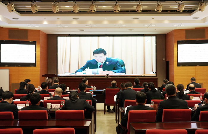 上午,高检院召开全国检察长(扩大)电视电话会议,我院设视频分会场。院党组成员、市管干部、二级警务专员、二级高级检察官、各部门负责人参会。