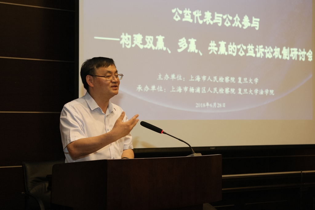 2018年6月28日,由上海市人民检察院、复旦大学主办,杨浦区人民检察院、复旦大学法学院承办的公益代表与公众参与——构建双赢、多赢、共赢的公益诉讼机制研讨会在复旦大学法学院召开。 “公共利益的代表”是新时代赋予检察机关的重要职责,对检察权提出了新的更高要求。此次会议恰逢我国民事行政检察工作30周年,邀请了专家教授、人大代表、资深律师、知名媒体人士等参与研讨,旨在进一步构建双赢、多赢、共赢的公益诉讼机制,切实提升公众对公益的关注度和参与度。希望通过研讨会的思想碰撞进一步加强检察公益诉讼的理论研究,扩大社会影响,推动检察机关在保护公共利益中的充分发挥职能作用,促进民事行政检察工作继往开来,使检察官真正成为公共利益的代表。 最高检民事行政检察厅、复旦大学和市检察院、杨浦区检察院的领导出席会议。 会上,三名市人大代表参与座谈。