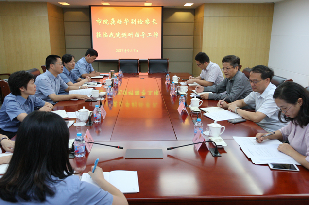 日前,市院龚培华副检察长赴杨浦区检察院调研指导工作。会上,杨浦区检察院汇报了2017年以来的侦监工作情况。龚培华副检察长重复肯定了杨浦区检察院侦监科今年以来取得的成绩,同时对进一步提高审查逮捕质量、效率与效果的提出要求。