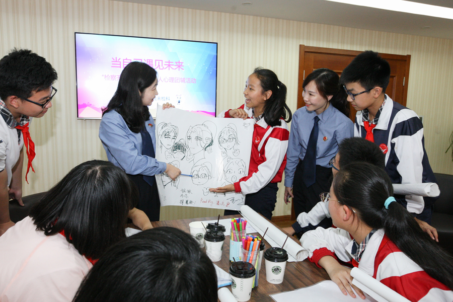 5月31日下午,杨浦区检察院开展“关爱祖国未来,擦亮未检品牌”检察开放日活动。 该院首先介绍了“法治进校园”的开展情况,人大代表在对该院的未成年人检察工作表示充分肯定的同时,提出意见建议。会后,该院邀请专业心理咨询师为辽阳中学学生代表开设“当自己遇见未来”心理团辅专场。同学们用绘画寻找美好记忆,憧憬未知将来,并向检察官和心理咨询师进行分享。